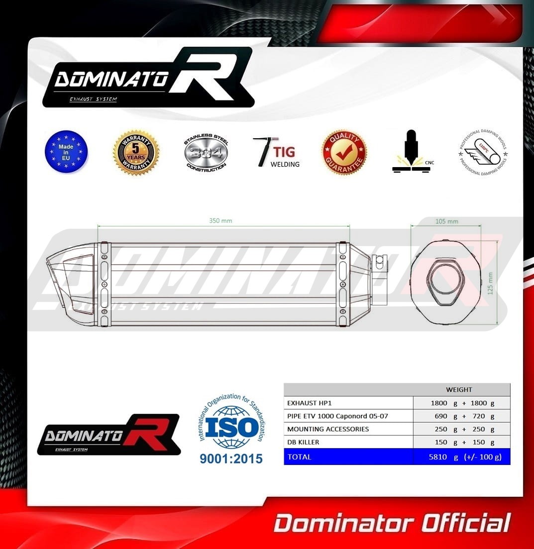 The Dominator exhaust will change the nature of your motorcycle giving it a unique sound. The exhaust system will increase the power and torque of the engine, while reducing the weight of the muffler.