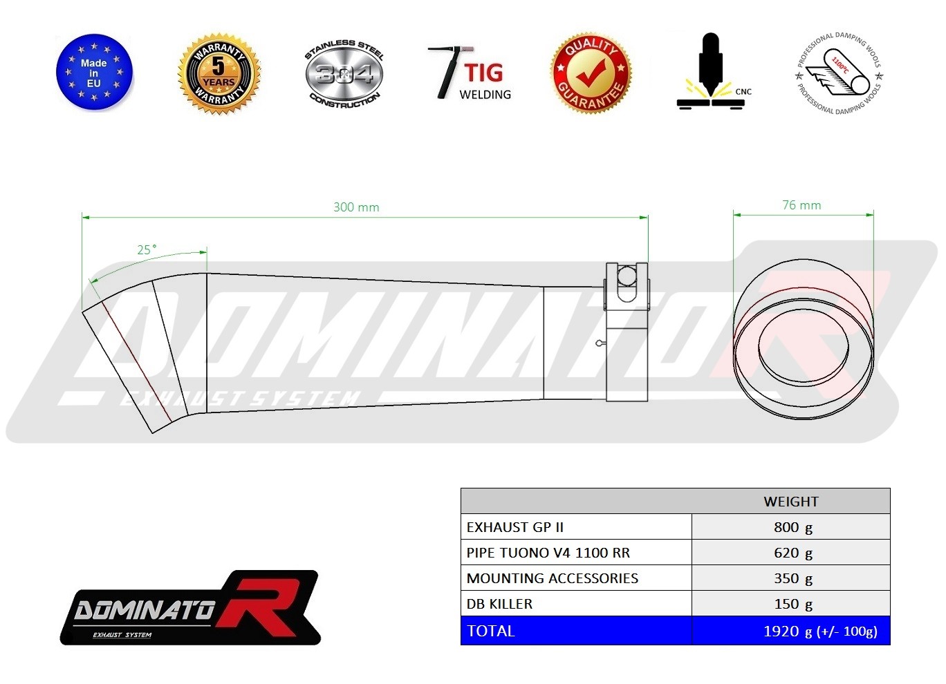 - 5 years Dominator Official Warranty