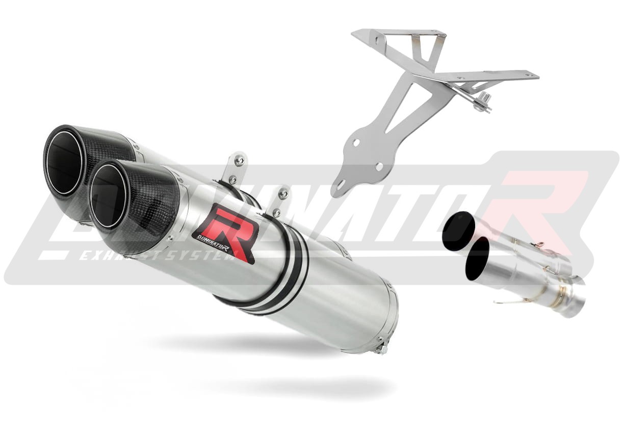- Sporty straight through Mufflers Slip-on in Satin finish with Carbon End Cap