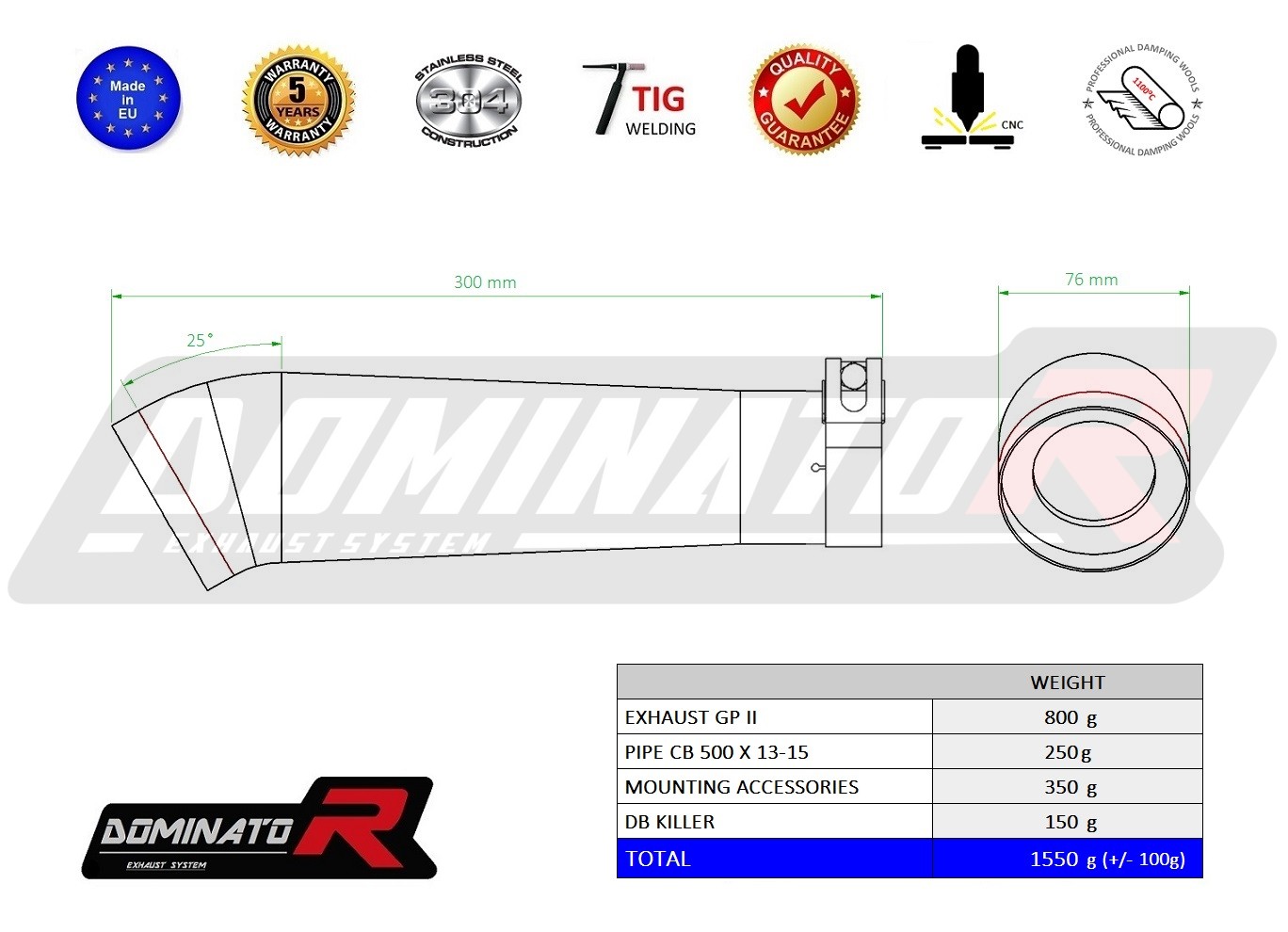 The Dominator Exhaust will change the nature of your motorcycle giving it a unique sound. The Exhaust system will increase the power and torque of the engine, while reducing the weight of the muffler.