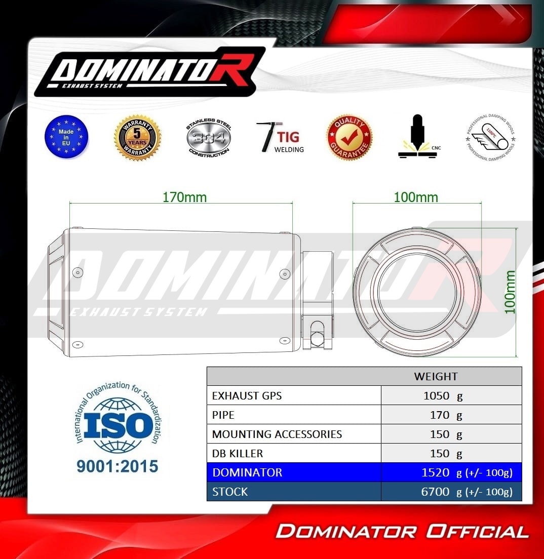 The Dominator Exhaust will change the nature of your motorcycle giving it a unique sound. The Exhaust system will increase the power and torque of the engine, while reducing the weight of the muffler.