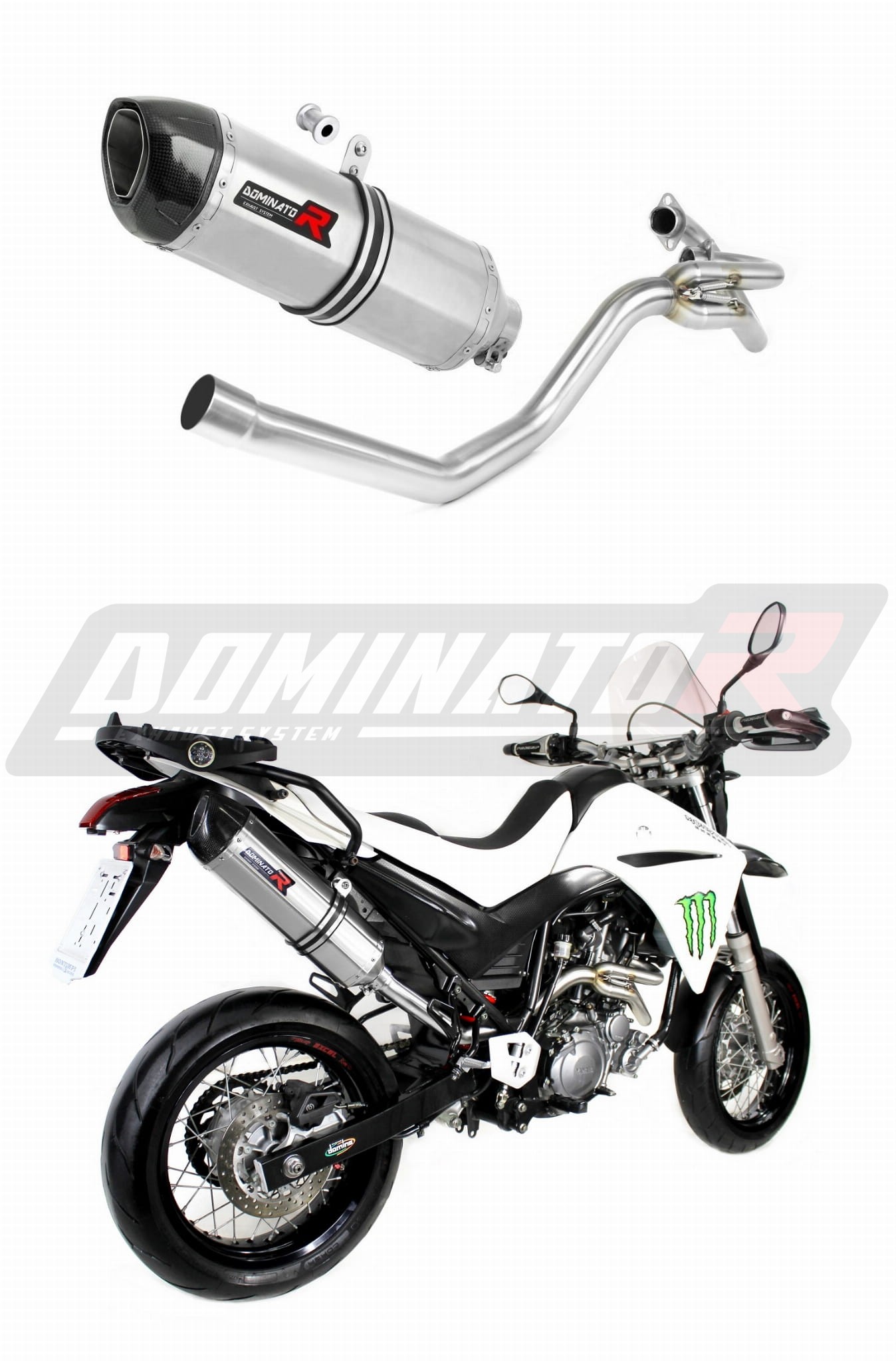 The Dominator Exhaust will change the nature of your motorcycle giving it a unique sound. The Exhaust system will increase the power and torque of the engine, while reducing the weight of the muffler.