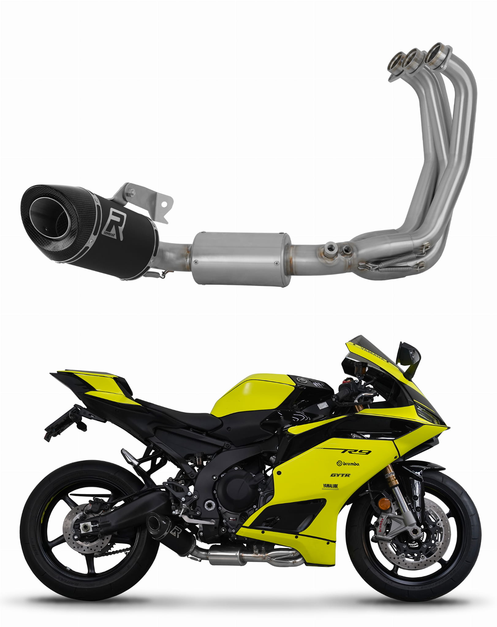 Yamaha YZF R9 2025 Full Exhaust System Collector Silencer HP8 BLACK + dB killer